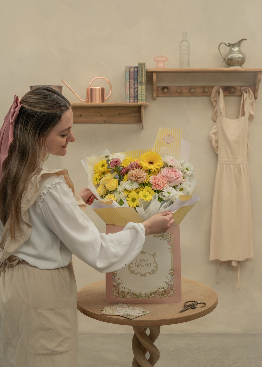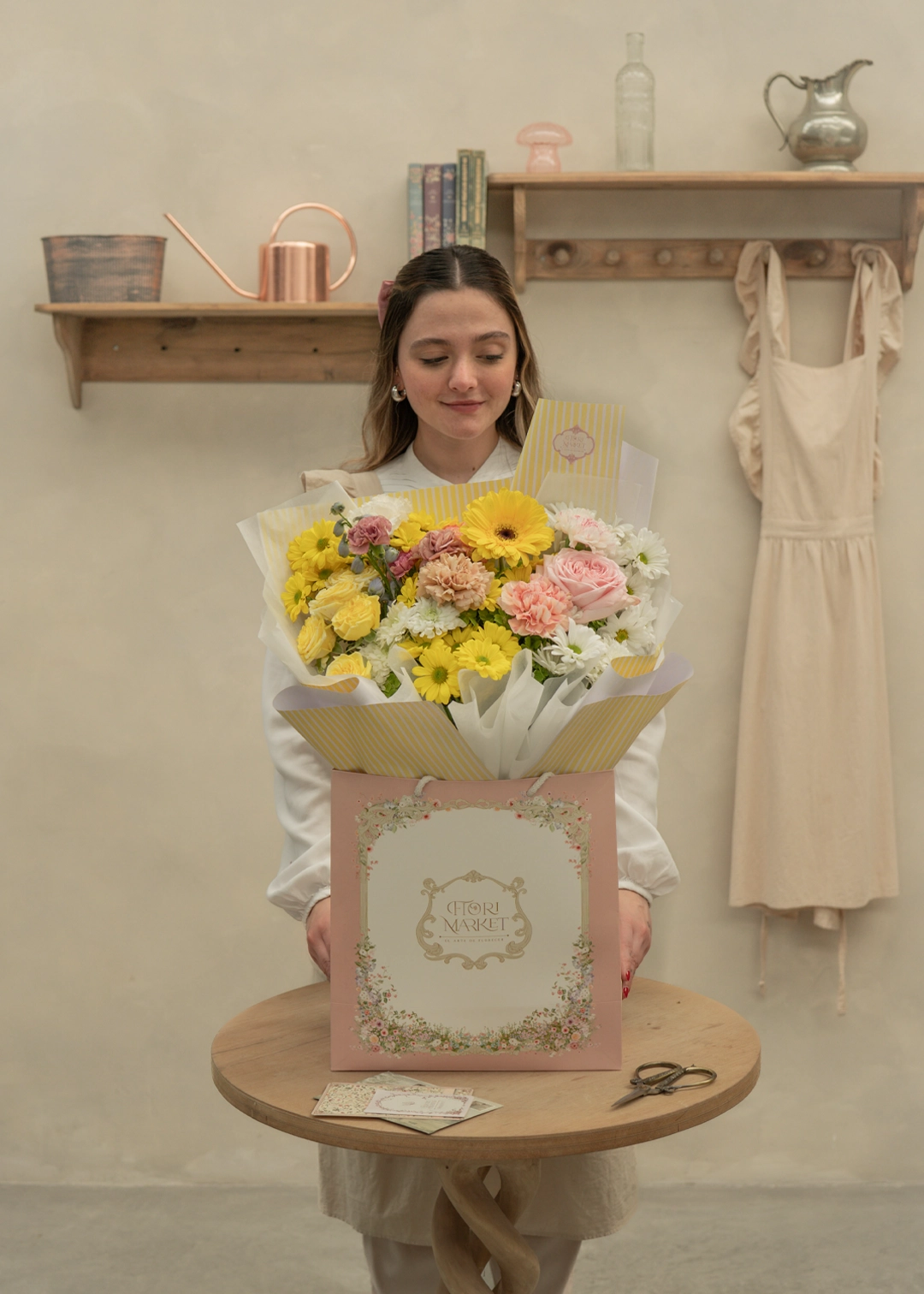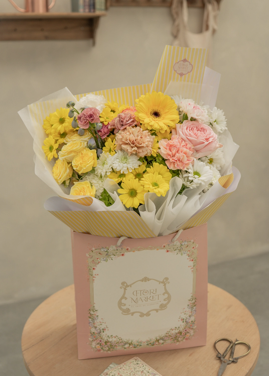 El resplandor de la primavera en un adorable Bouquet de flores frescas 100% naturales, en tonalidades variadas de amarillos con toques orgánicos, perfecto para celebrar el inicio de la primavera y sorprender a esa persona especial.