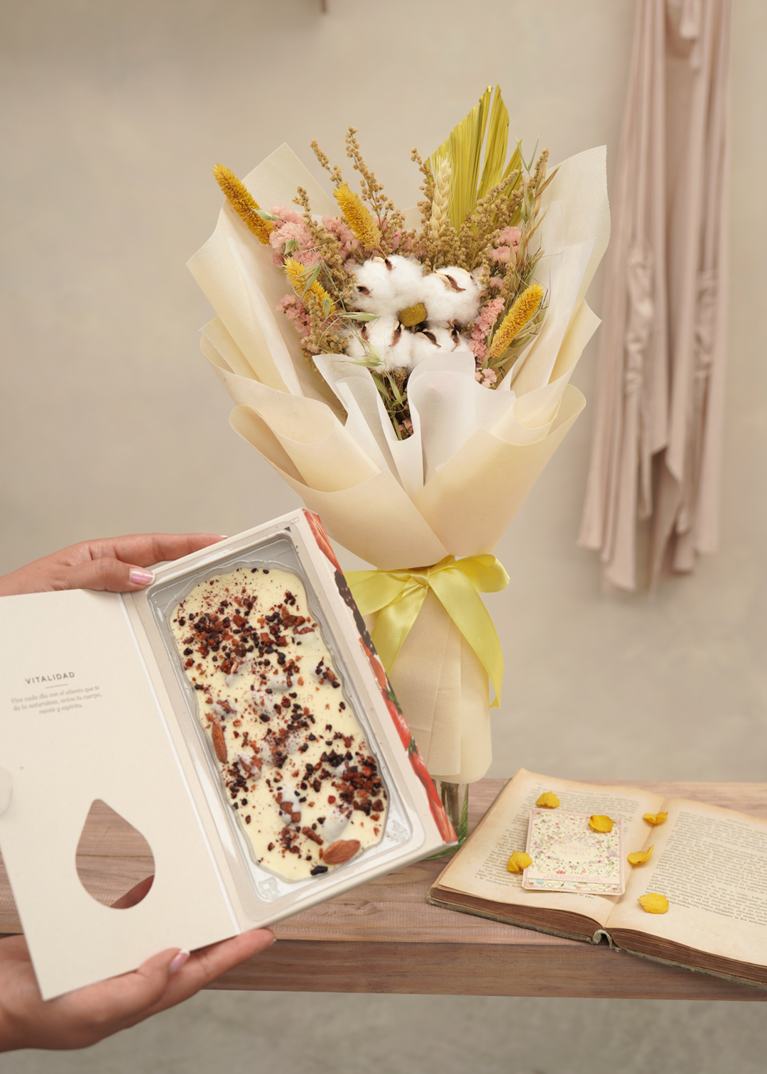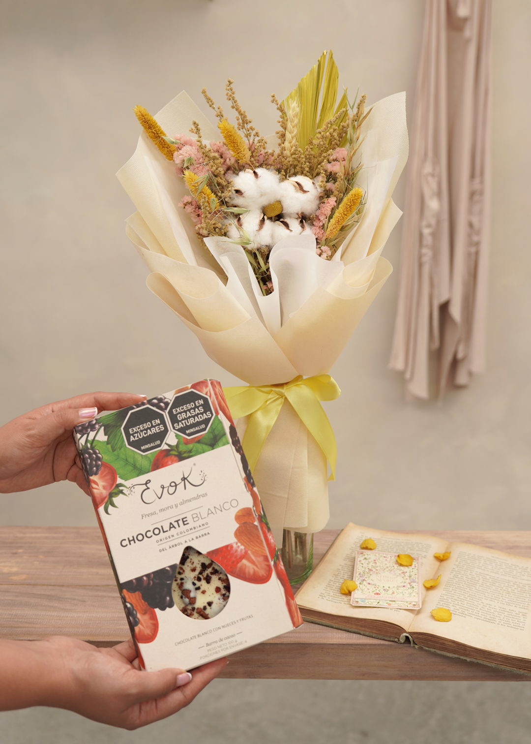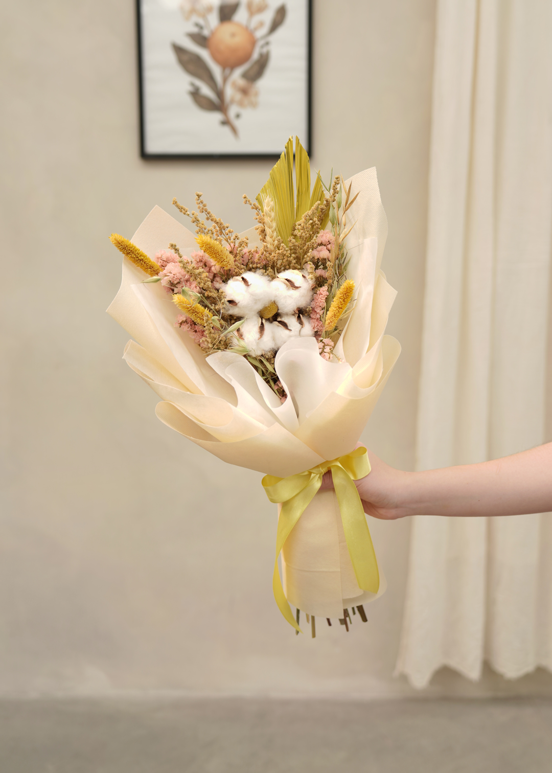 Un toque de eternidad en bouquet de flores secas 100% naturales de larga duración, delicadamente empacado al estilo koreano y perfecto para dar un detalle especial que durará por mucho tiempo.