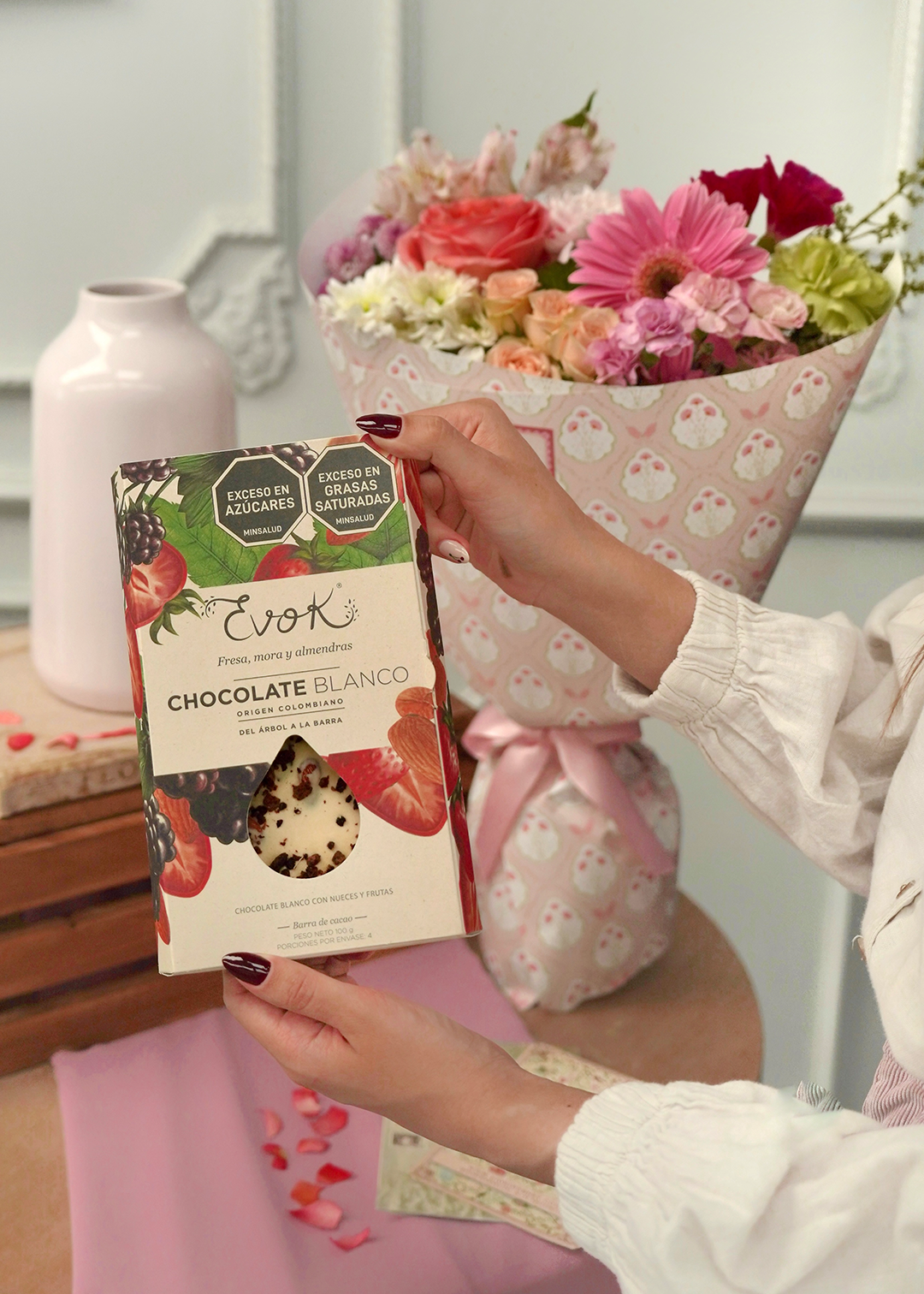 Combo de temporada incluye: Adorable Bouquet de flores frescas 100% naturales, en un mix de tonalidades primaverales, perfecto para hacer sonreír a esa persona especial+ barra de chocolate Evok + Florero en ceramica